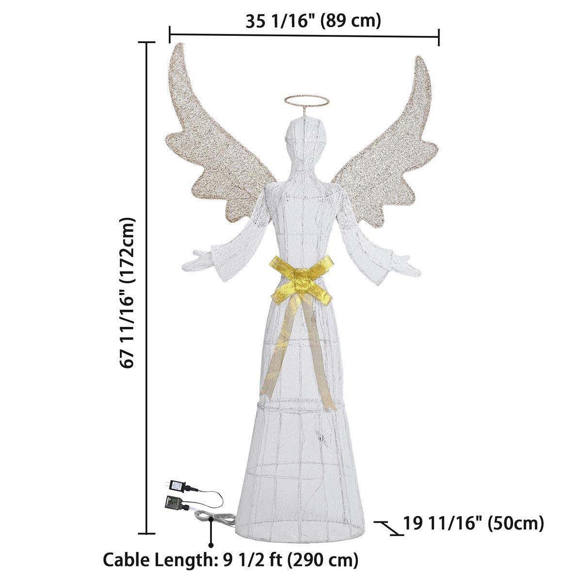 - Christmas angel with gold wings, halo & ribbon bow, adorned with 186 warm white LEDs to fill your yard with warm ambiance