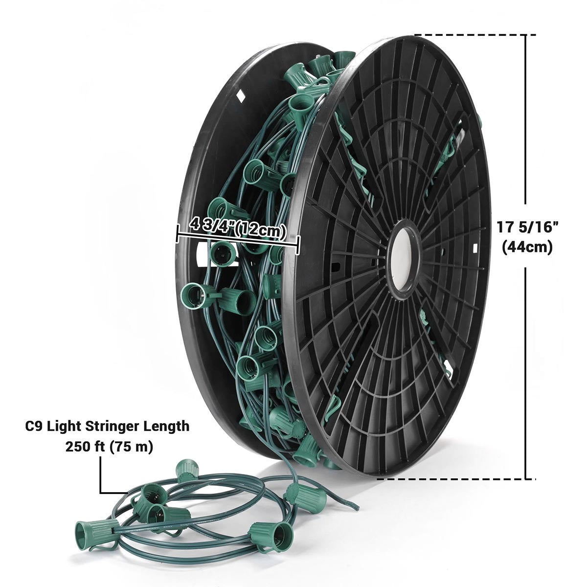 Unleash your grandest holiday visions with our Commercial Grade C9 Light Socket Spools. Designed for professionals, this customizable lighting solution offers cut-to-fit flexibility for effortless installation on any scale. Available in 250ft, 500ft, and 1000ft spools with your choice of brown or green wire, it’s the perfect foundation for creating dazzling, long-lasting displays for shopping malls, storefronts, festivals, and more. (Bulbs sold separately).
