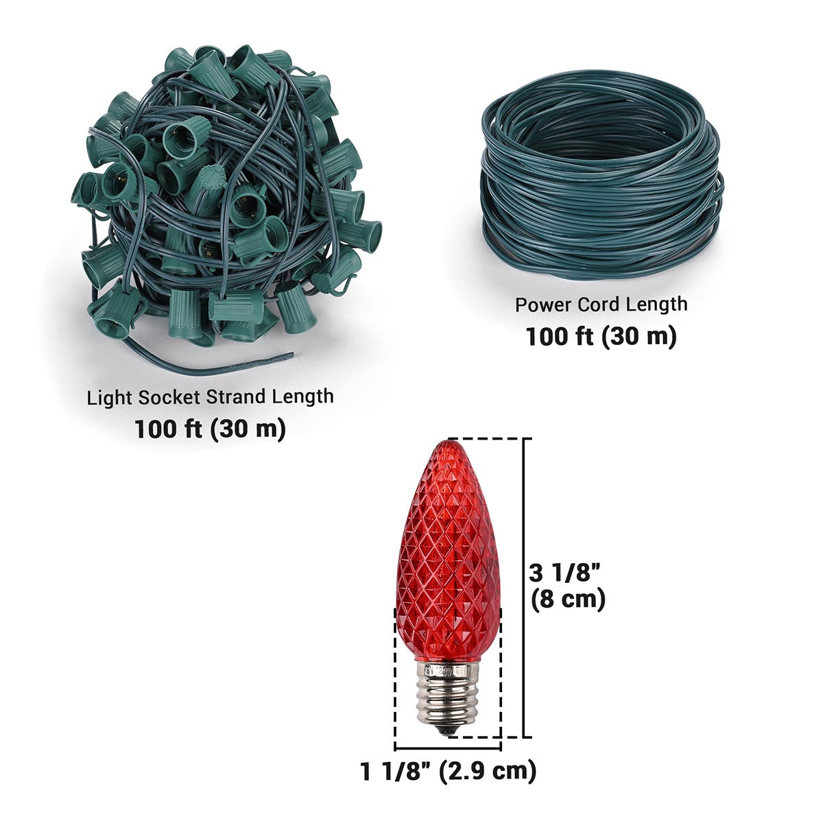 - Light Socket Strand Length: 100 ft (30 m)
