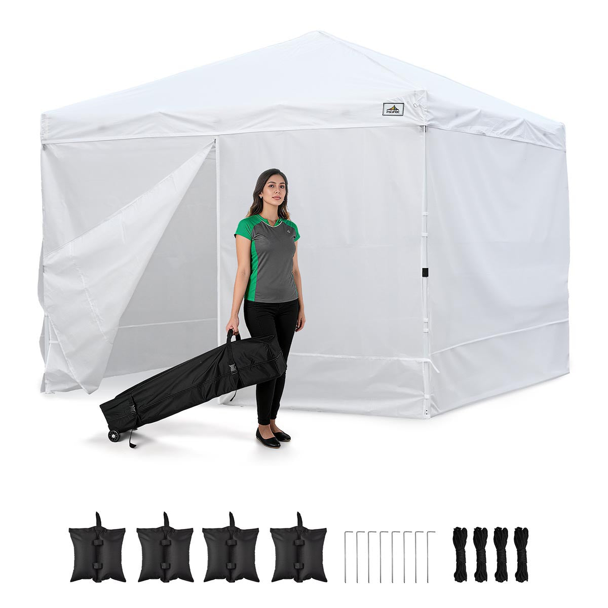 Completed Waterproof 10x10ft Folding Easy Pop Up Canopy Tent Instant Shelter comes with a carry bag, features 3-position height adjustment, fast and easy to set up. Perfect for outdoor events, such as wedding, parties, craft shows, sporting events, outdoor ranges and more.