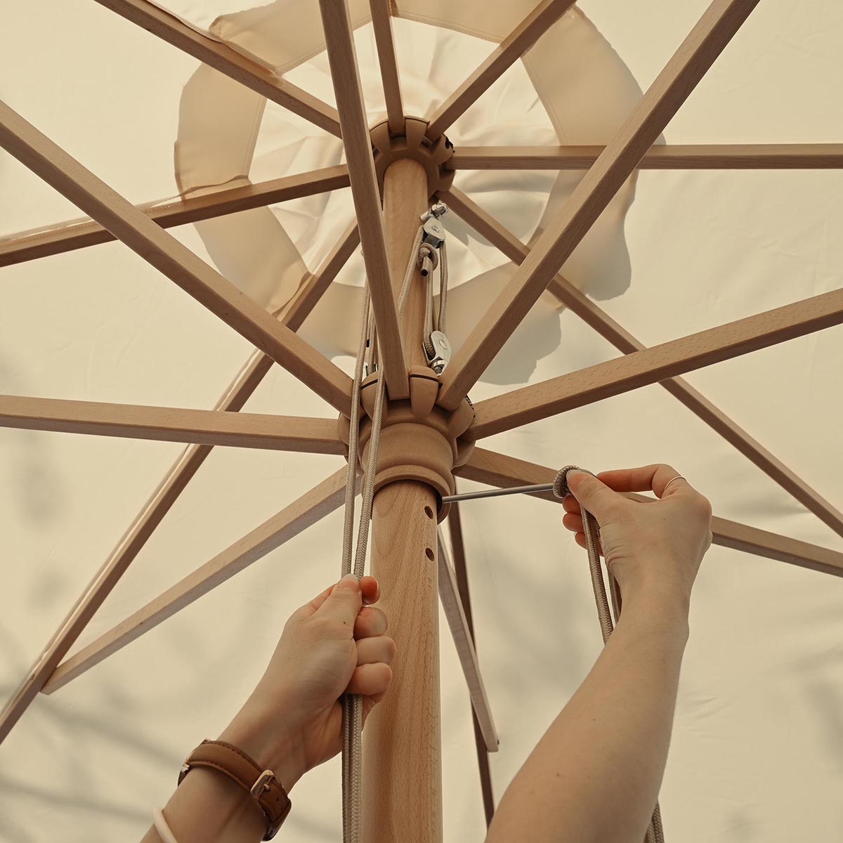 This 13ft German Beech Wood Umbrella can help you to make your dreams come true. Green trees, gentle breeze, German beech wood texture, all blend into nature to make this wood umbrella perfect for garden, patio, weeding scene, swimming pool, sandy beach, seaside or lakeside.