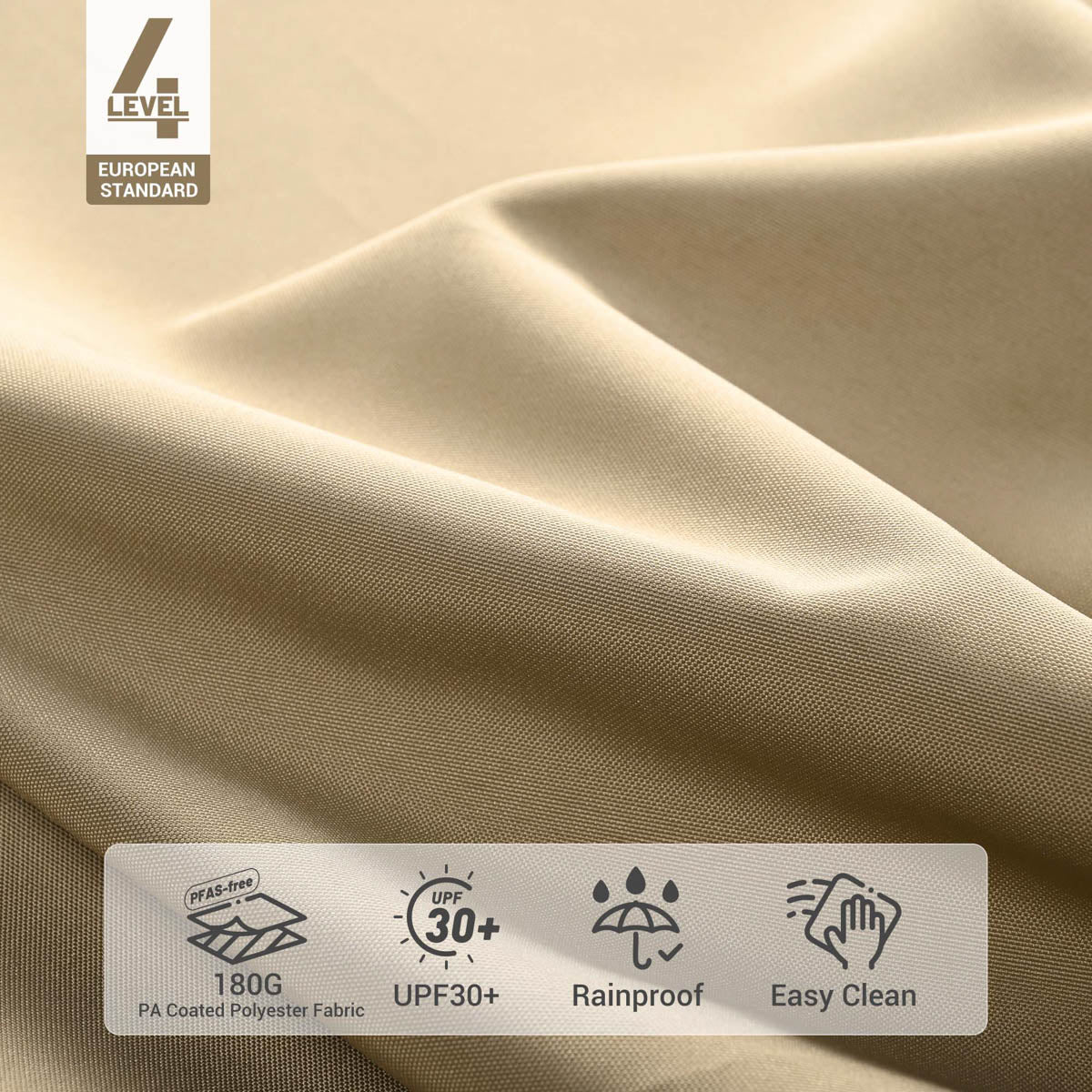 - UV30+ protective, PFAS-free and anti-fade polyester canopy