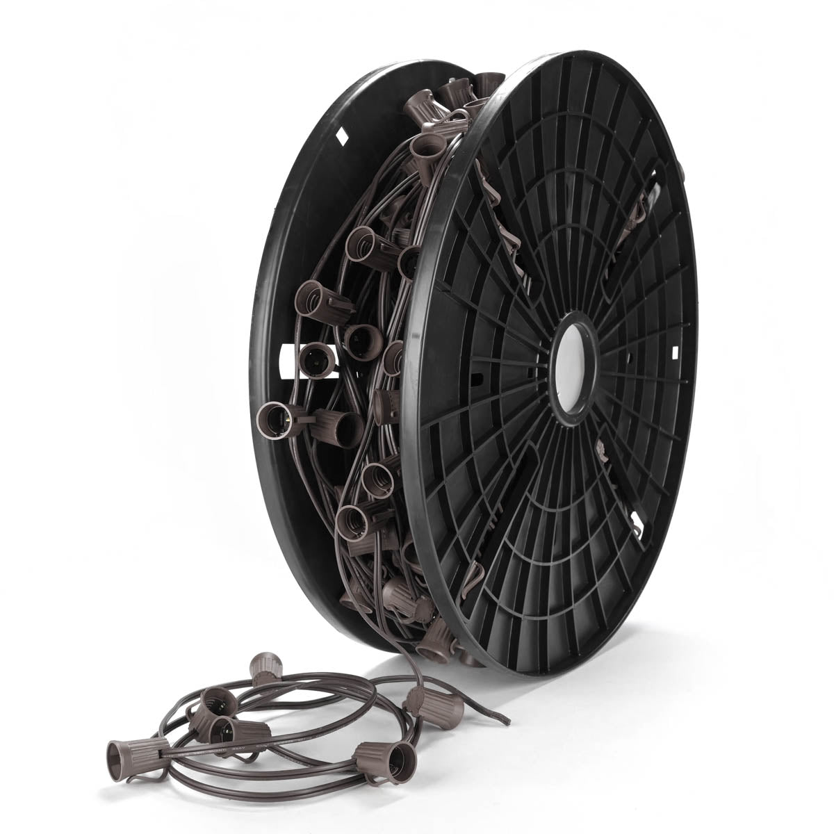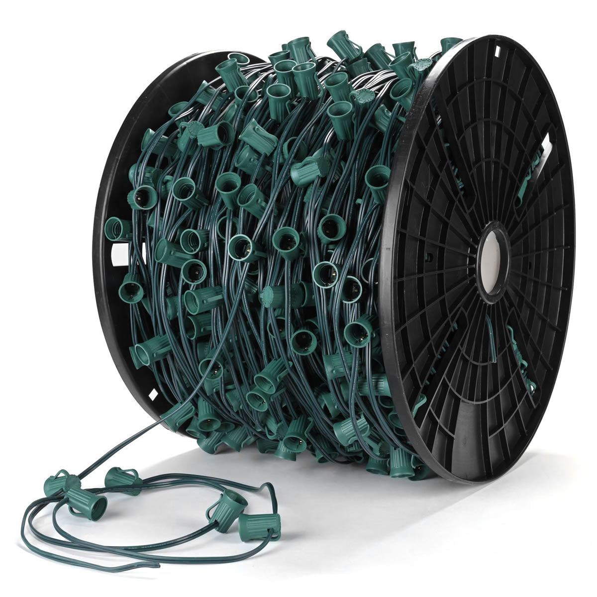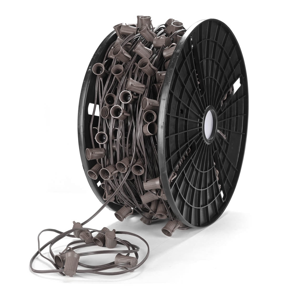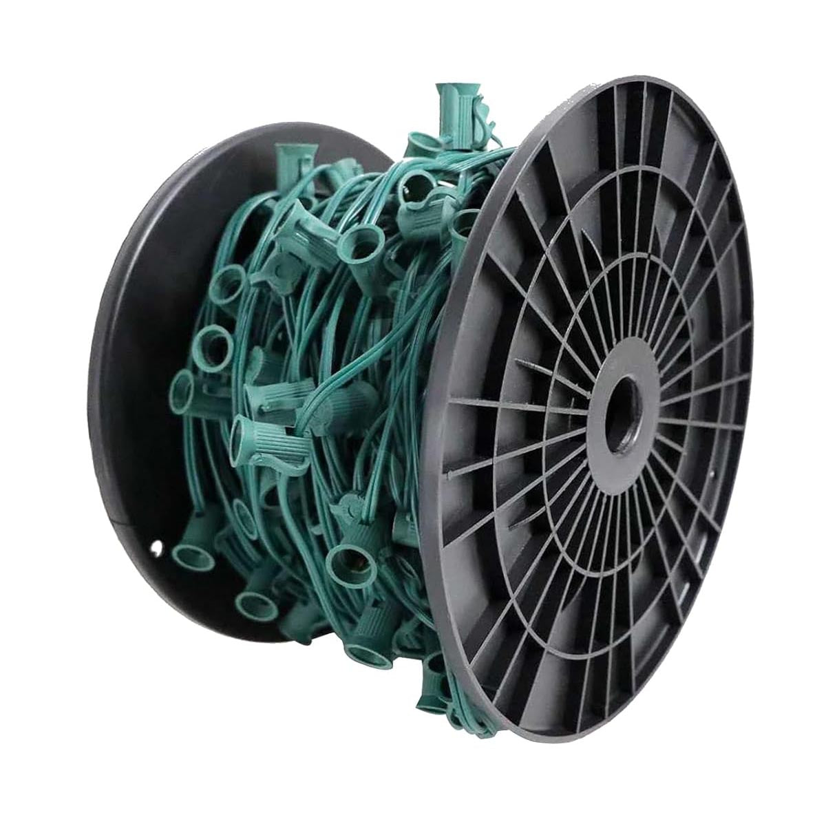 DIY C9 Christmas Light compatible with E17 base bulbs, available in 250, 500, and 1000-foot lengths, plus bulk reels.