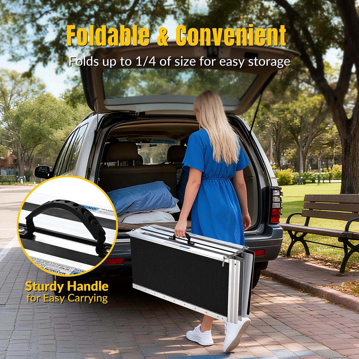 - Foldable & Convenient - This handicap ramp folds up to 1/4 of its size for easy storage and transport, with a soft handle for easy carrying, making it ideal for travel, events, or home use. Set it up in seconds and enjoy seamless access wherever you go