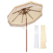 7 ft Boho Outdoor Umbrella with fringe comes in the light brown color canopy with intricate crochet stitch and cotton fringe for delivering a sense of serenity and simplicity, a cozy, rustic decoration for allowing you to immerse yourself into surroundings and finding your escape from the mundane.