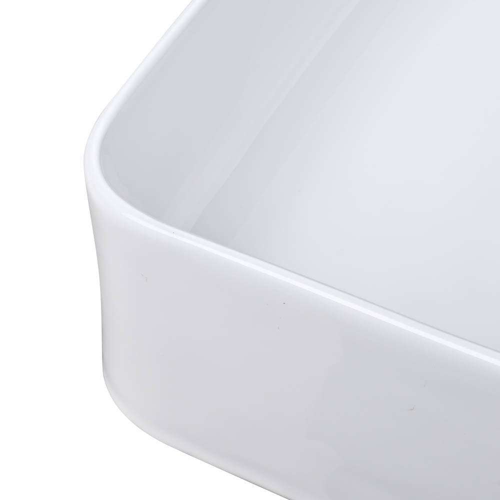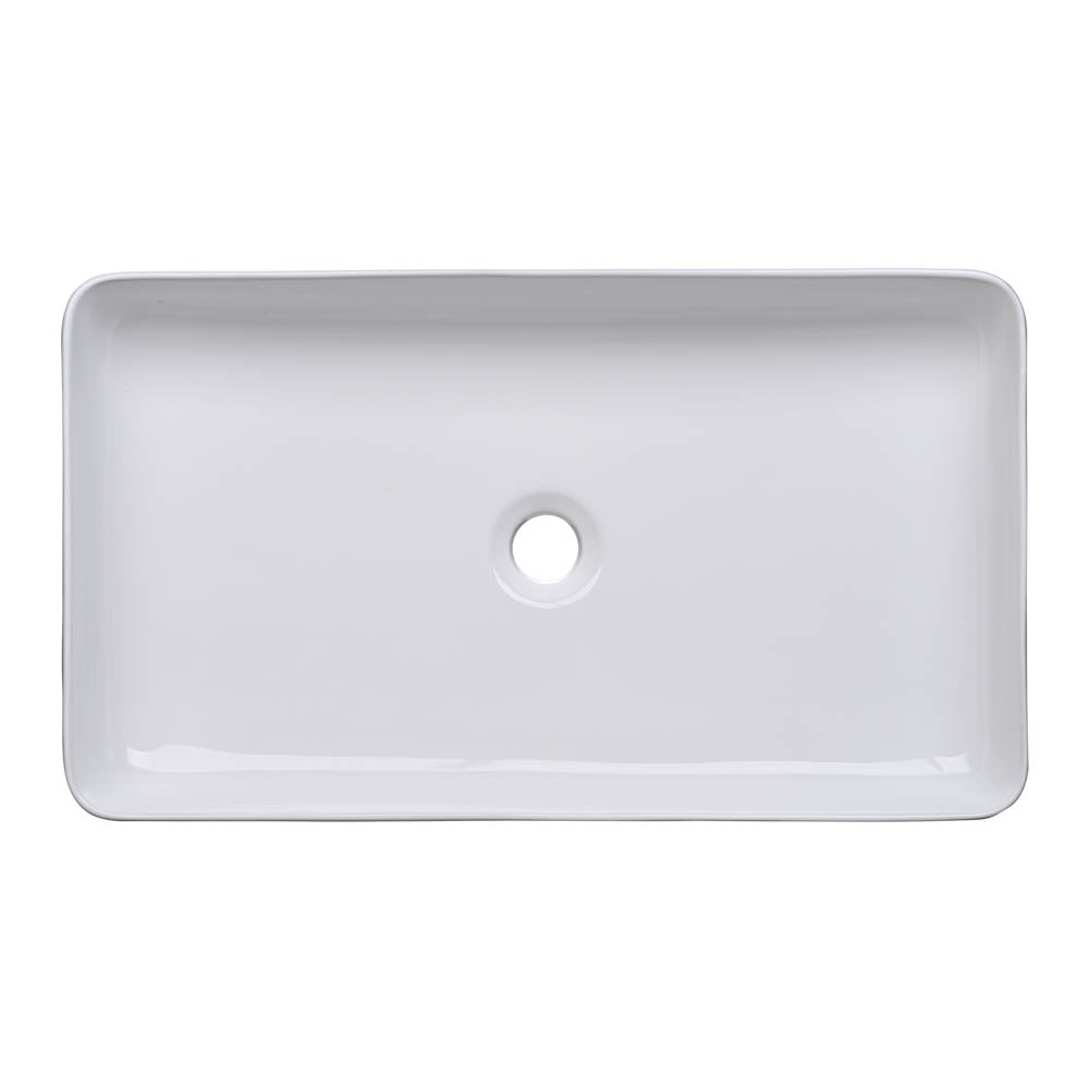 23" x 13" x 4" Farmhouse Bathroom Countertop Sink is made of durable porcelain with glazed surface for long-lasting beauty and it features simplistic rectangular shape to match well with farmhouse above counter faucets and decoration. It is ideal for home and commercial bathrooms with different styles such as farm-house style and modern style.