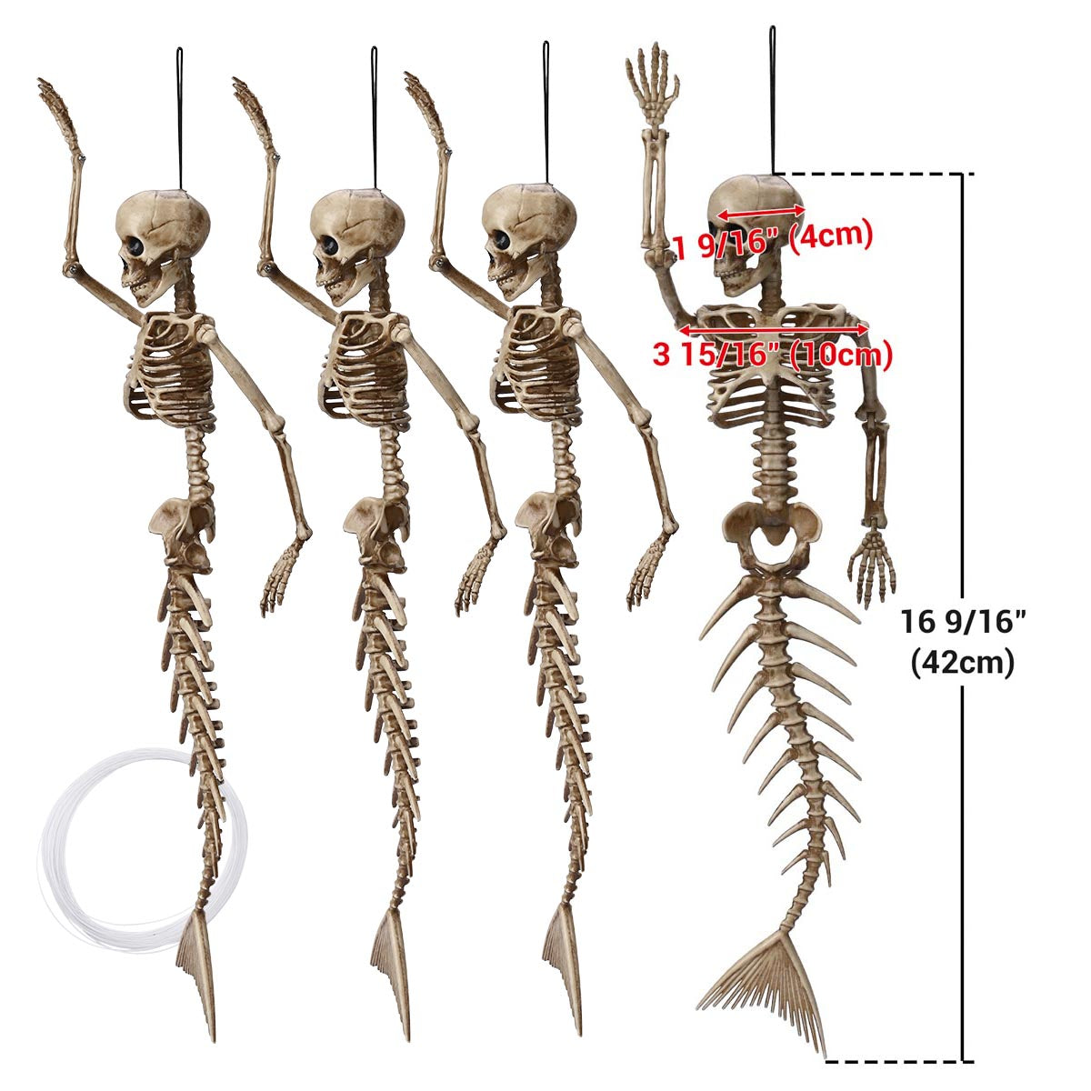 - Mermaid Skeletons - Mythical nightmare! Half-human, half-fish skeletons with fully flexible joints and tails, perfect for adding a haunting glow to your aquarium or underwater-themed Halloween displays!