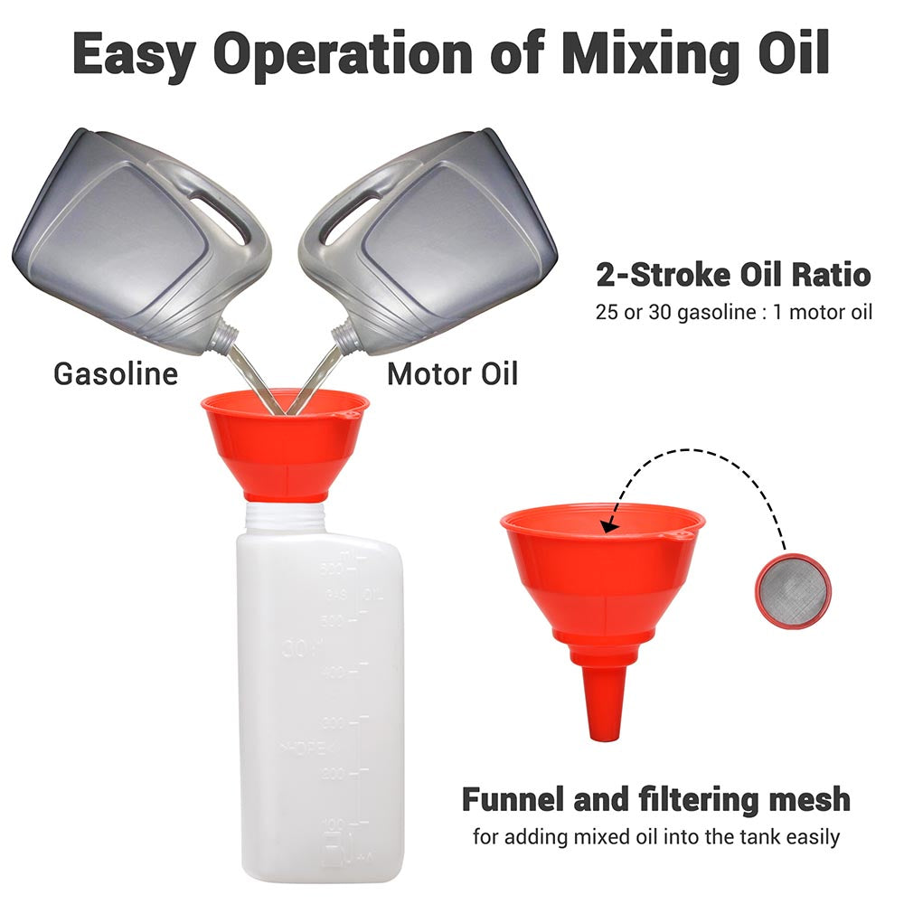 - Fuel Type: Mixed Oil (25 or 30 gasoline : 1 motor oil)