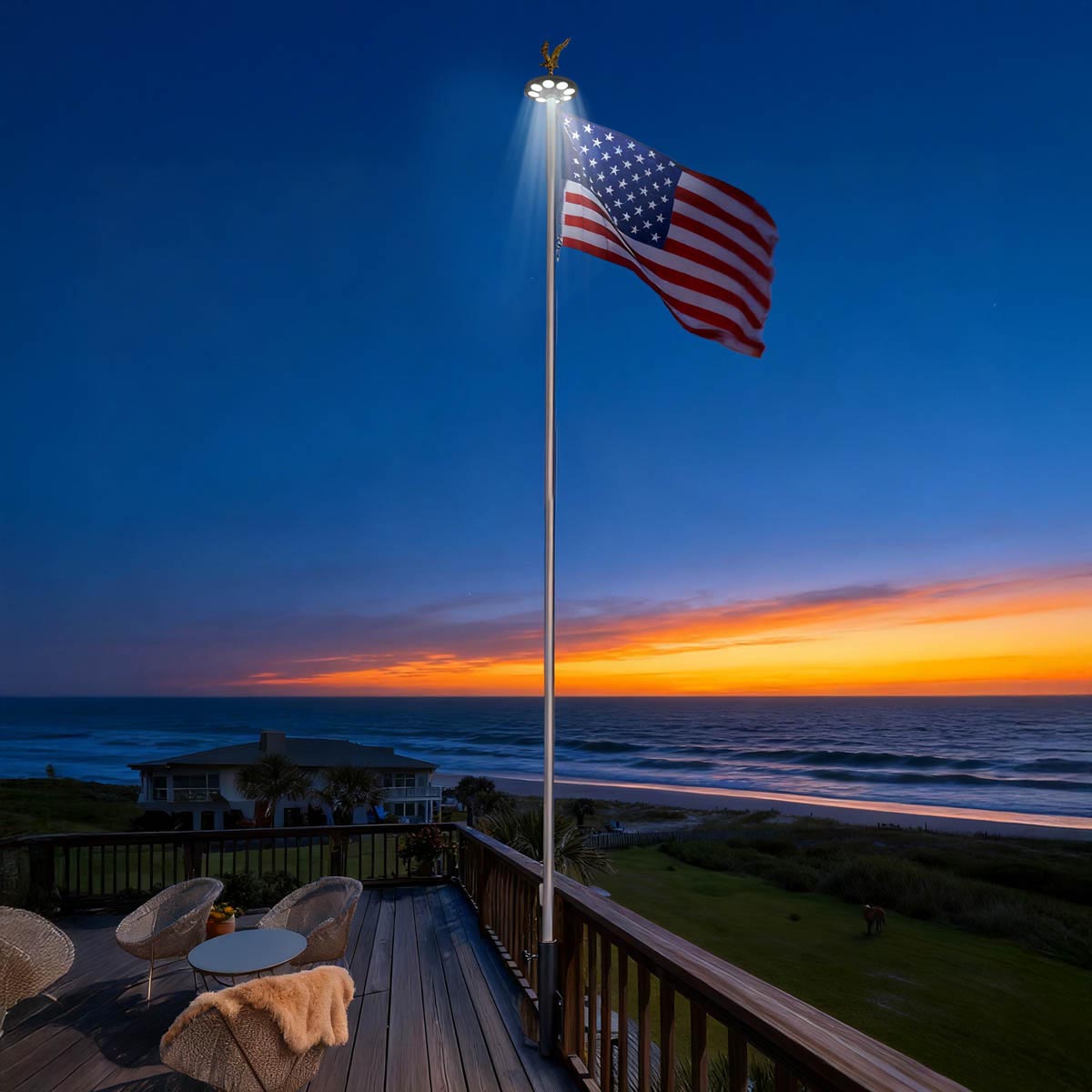 - Flags & Hardware: 1x 3'x5' American National Flag, 1x Ball Finial, 1x Eagle Finial