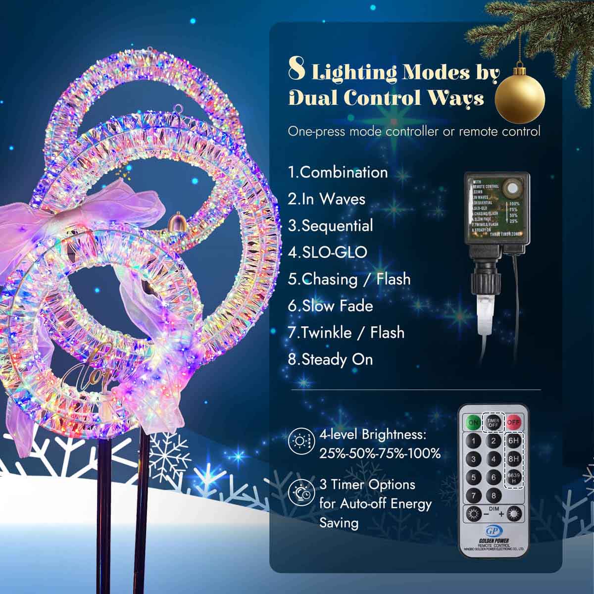 - Plug-and-Play & Dynamic Lighting - Bring the spirit of Christmas to life with the easy-to-use plug-and-play design. Remote control offers 8 lighting modes, 4 adjustable brightness levels, and 3 timers. Create dynamic displays that suit different venues and set the ambiance