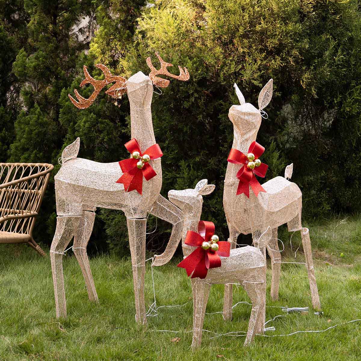 - Includes a majestic buck, a gentle doe, and a playful fawn, bringing the joy of the holiday season to life with their endearing presence