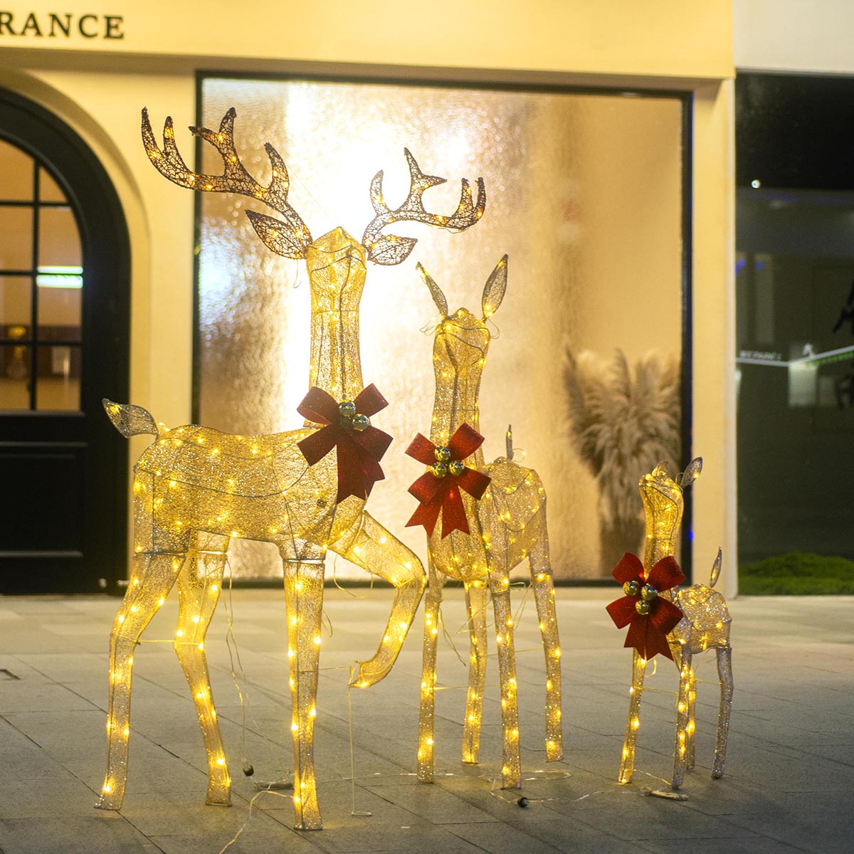 TheDIYoutlet Outdoor Christmas Decoration Pre-lit Reindeer Family Set for Sale. Realistic design, 8 beautiful lighting effects and durable wire frame, great choice to decorate your Christmas party while bringing a warm and festive ambience to your family.